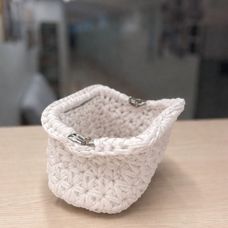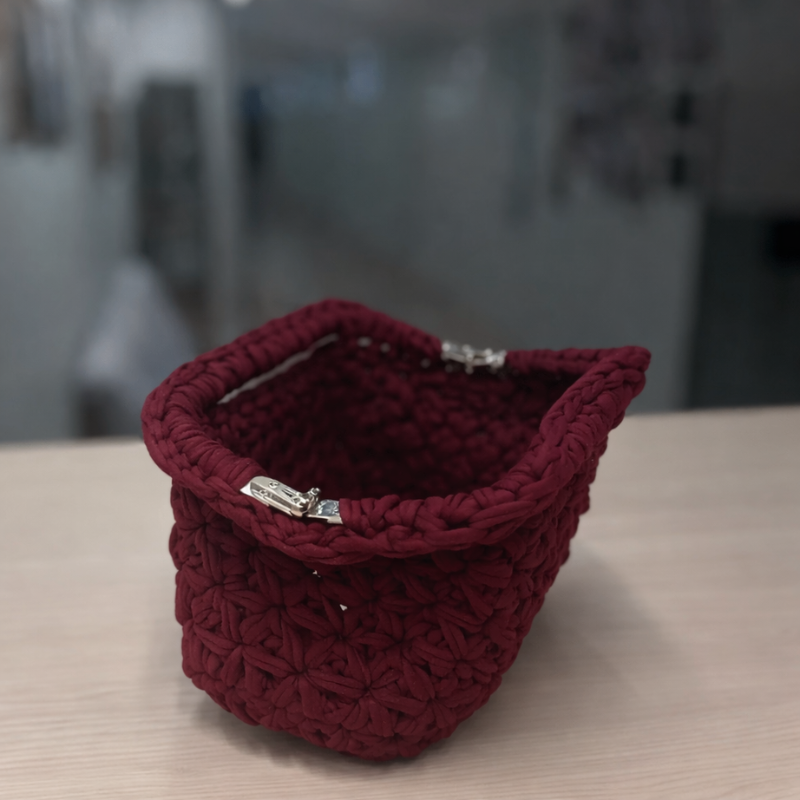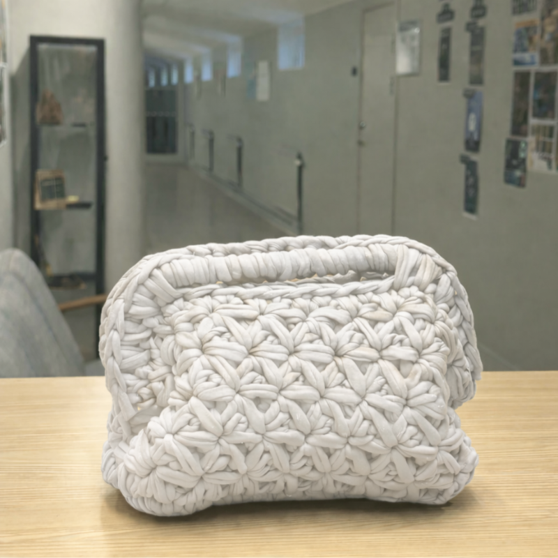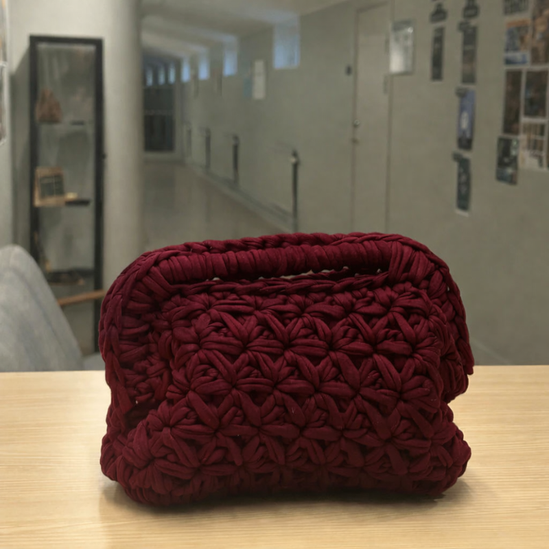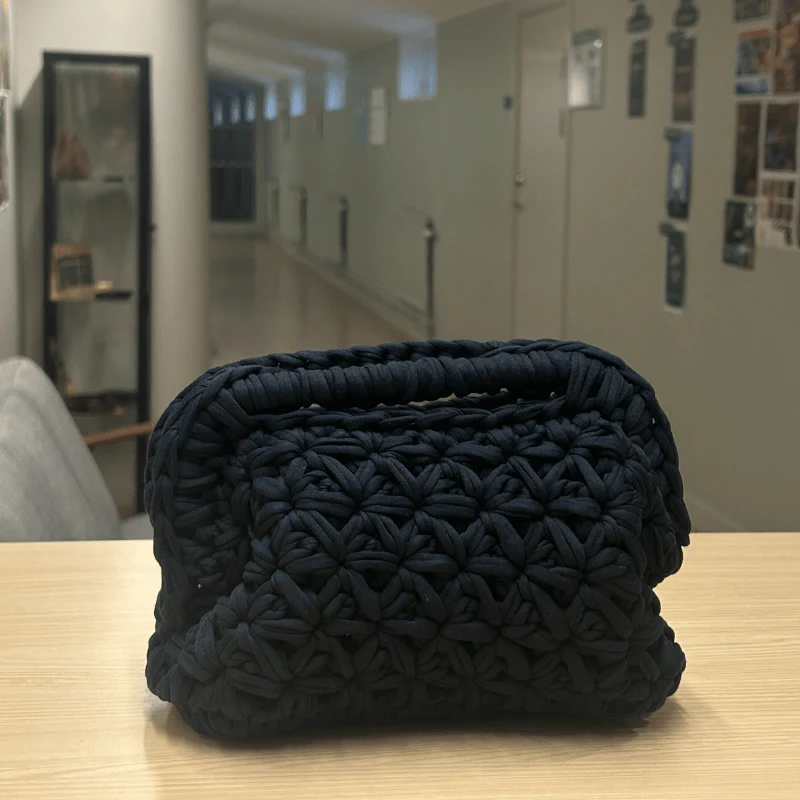 Varje väska virkas för hand och blir helt unik.